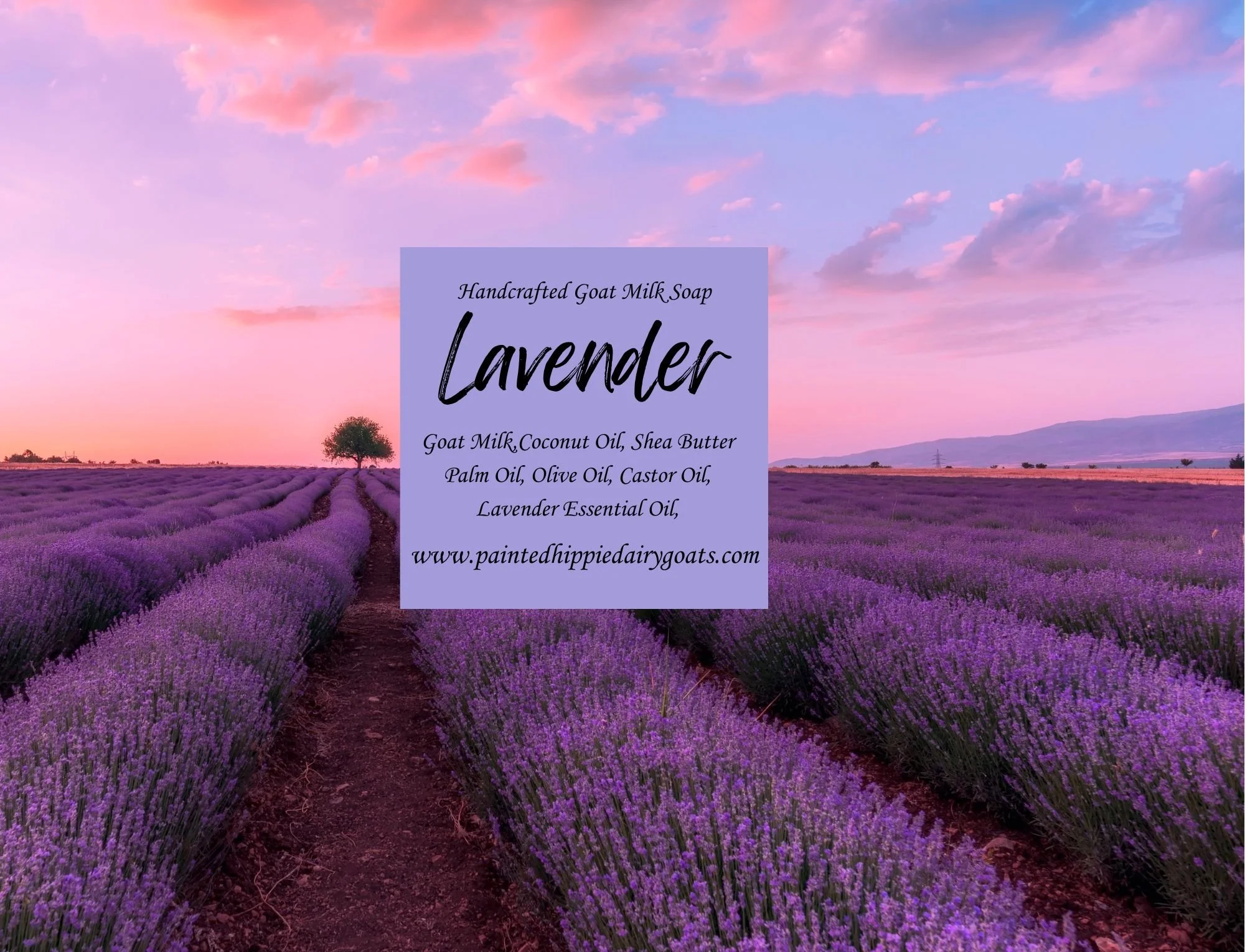 Ingredients: Goat Milk, Coconut Oil, Palm Oil, Shea Butter, Olive Oil, Castor Oil, Lavender Esssential Oil.