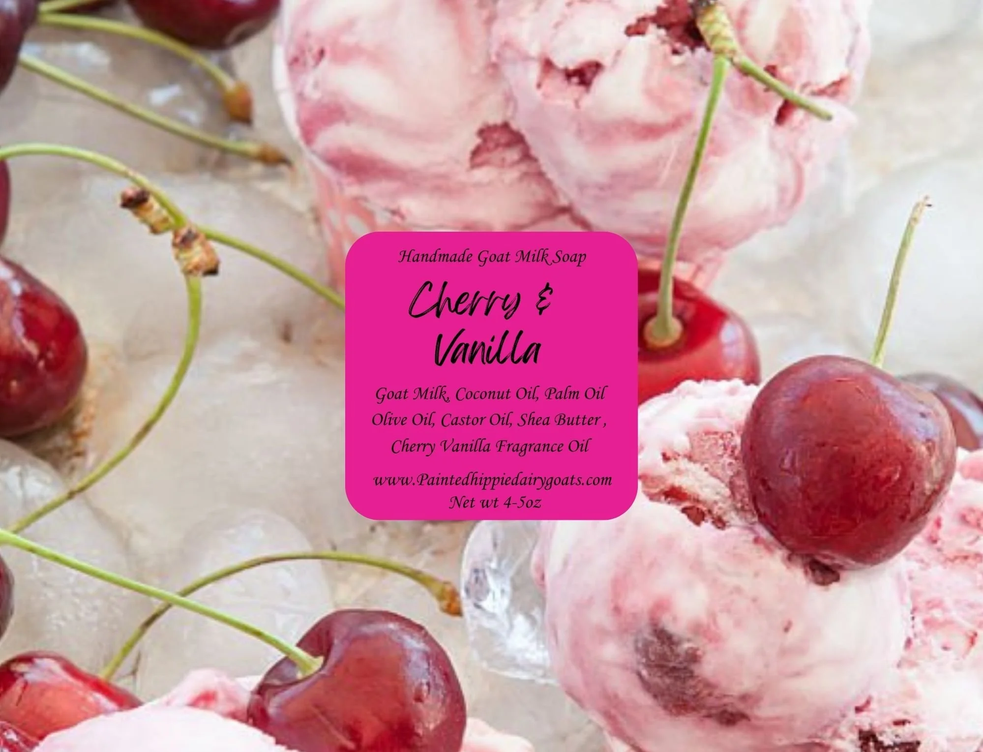 Ingredients: Goat Milk, Coconut Oil, Shea Butter, Olive Oil, Palm Oil, Castor Oil, Cherry Vanilla Fragrance Oil